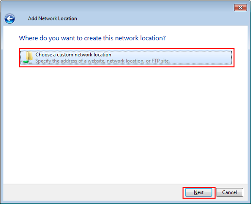 Sélectionnez Choisissez un emplacement réseau personnalisé et cliquez sur Suivant.