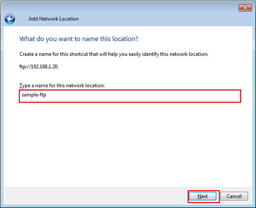 Entrez un nom pour l'emplacement réseau et cliquez sur Suivant.