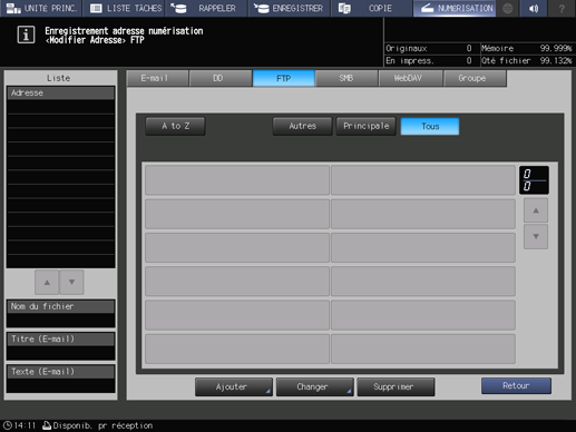 Explication supplémentaireAprès avoir appuyé sur NUMÉRISATION, appuyez sur FTP pour afficher cet écran.