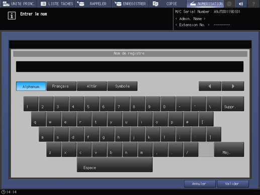 Entrez le nom d'enregistrement et appuyez sur Valider.