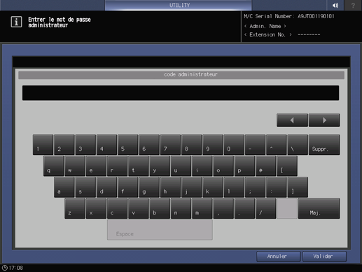Si l'écran Saisie mot de passe s'affiche, entrez le mot de passe administrateur de huit lettres et appuyez sur Valider.