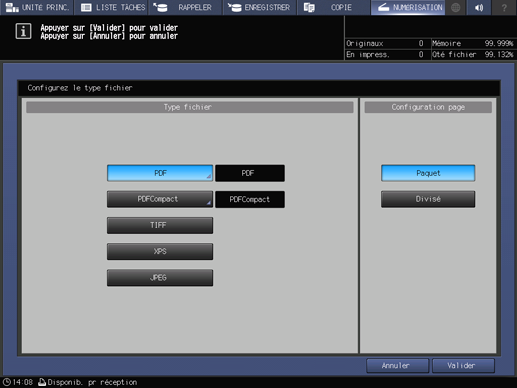 Combinez Type fichier et Configuration page pour configurer les réglages.
