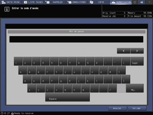 La fonction de cryptage n'est pas disponible pour les fichiers PDF/A-based PDF, TIFF, XPS et JPEG.