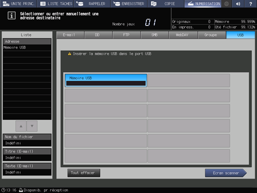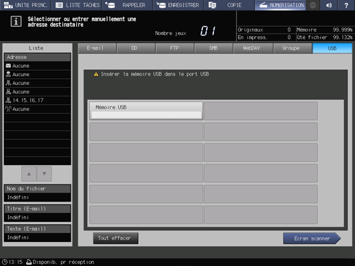 Appuyez sur Mémoire USB dans la liste d'adresses.