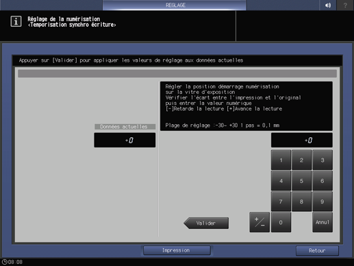 8. Utilisez le clavier de l'écran tactile ou le clavier du panneau de contrôle pour entrer les données de réglage.