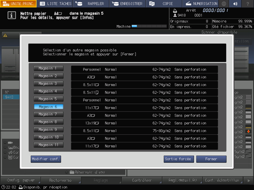 Le magasin sélectionné pour la sortie forcée sera utilisé tant que la tâche concernée n'est pas terminée.