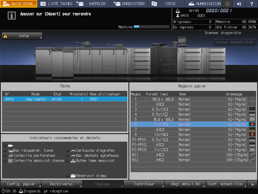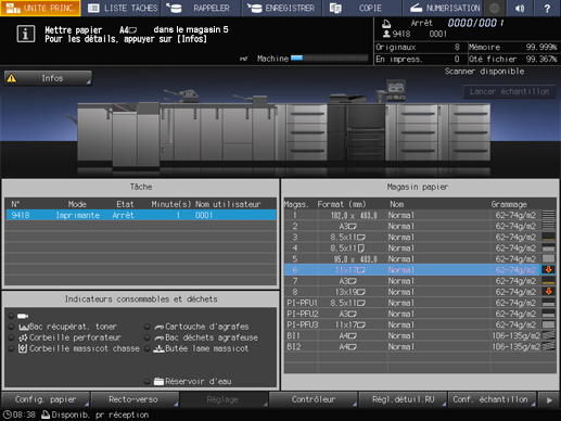 Explication supplémentaireLe magasin disponible est celui chargé du papier de même format.