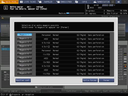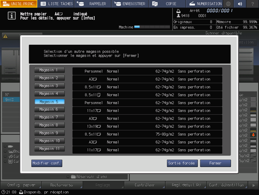 Le magasin sélectionné pour la sortie forcée sera utilisé tant que la tâche concernée n'est pas terminée.
