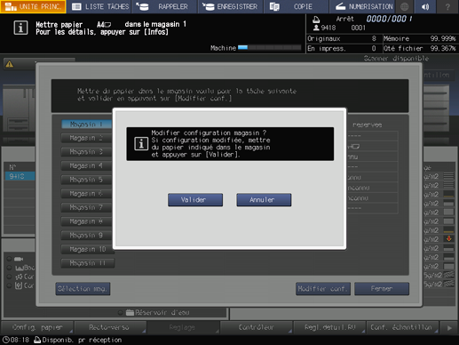 Appuyez sur Mod.régl. pour définir le réglage papier requis par les données d'impression.