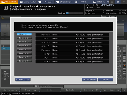 Le magasin sélectionné pour la sortie forcée sera utilisé tant que la tâche concernée n'est pas terminée.