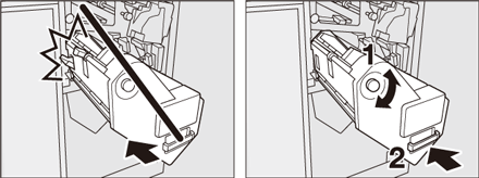 Attrapez la poignée [FS9] pour remettre l'empileur à sa position d'origine et refermez la porte avant de l'unité de finition.