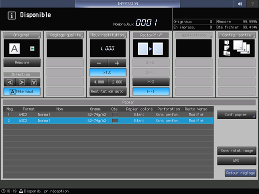 Sélectionnez du papier A3 short edge feed, et appuyez sur la touche Départ du panneau de contrôle.
