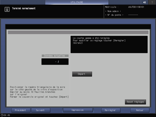 Une mire de test est imprimée et l'écran retourne automatiquement sur Régl.décal.gamma impr.auto.
