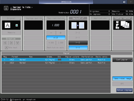 Explication supplémentaireLorsque l'impression est terminée, appuyez sur Retour réglage pour revenir à l'écran Liste des compteurs.