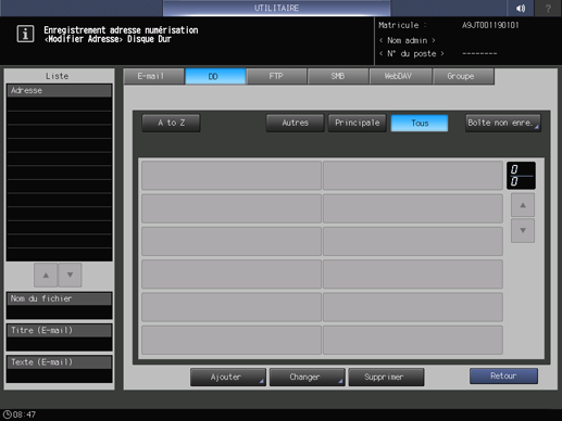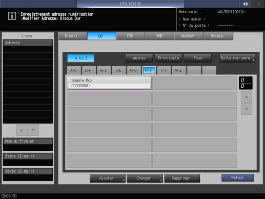 condition préalableVous pouvez enregistrer 150 destinations sur disque dur (boîtes utilisateur) max.