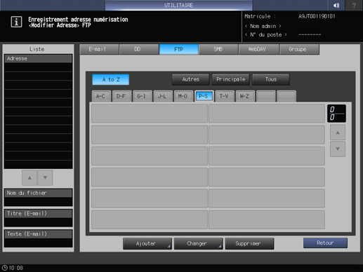 Enregistrez un serveur FTP. L'envoi de données de numérisation à un serveur FTP est facilité par l'enregistrement du serveur FTP comme destination.