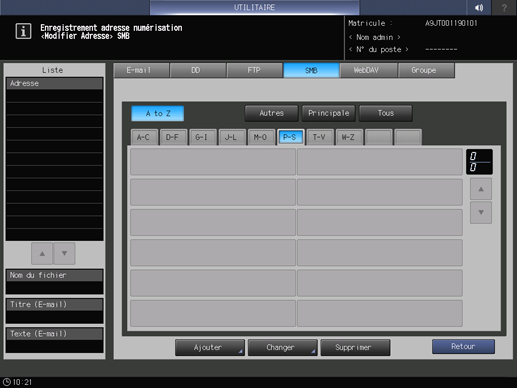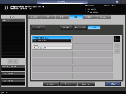 Utilitaire/Compteur|Enregistrement d'un serveur SMB comme destination