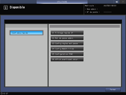 L'écran Menu Conf.sécu.rapide s'affiche.
