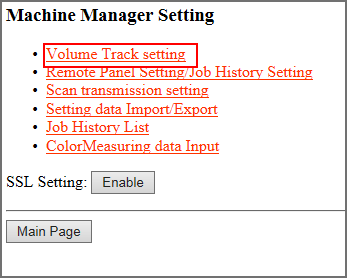 Explication supplémentaireLa liste des données de suivi de volume est enregistré au format CSV. L'enregistrement des données ne peut pas avoir lieu quand une opération est en cours sur la machine. Reprenez l'enregistrement dès que la machine est en veille. Pour recommencer, cliquez sur Back dans la fenêtre du navigateur pour revenir à l'écran Volume Track data list.