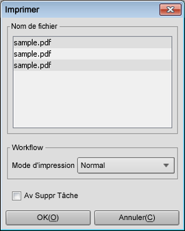 Pour supprimer la tâche de la liste des tâches en attente une fois l'impression terminée, cochez [Av Suppr Tâche].