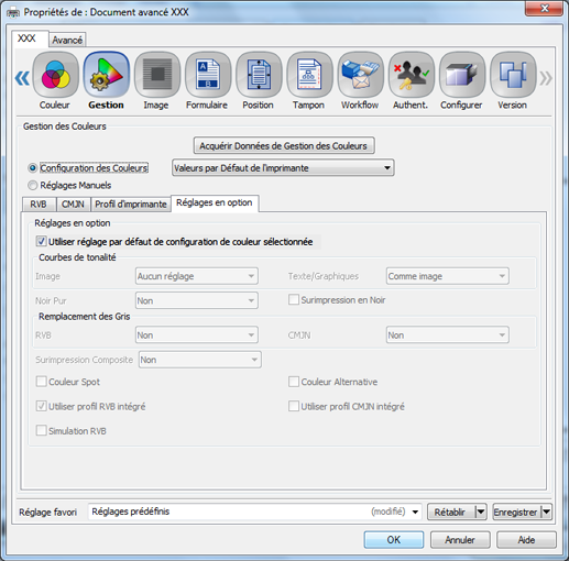 Cliquez sur l'onglet [Gestion], puis cliquez sur [Acquérir Données de Gestion des Couleurs].
