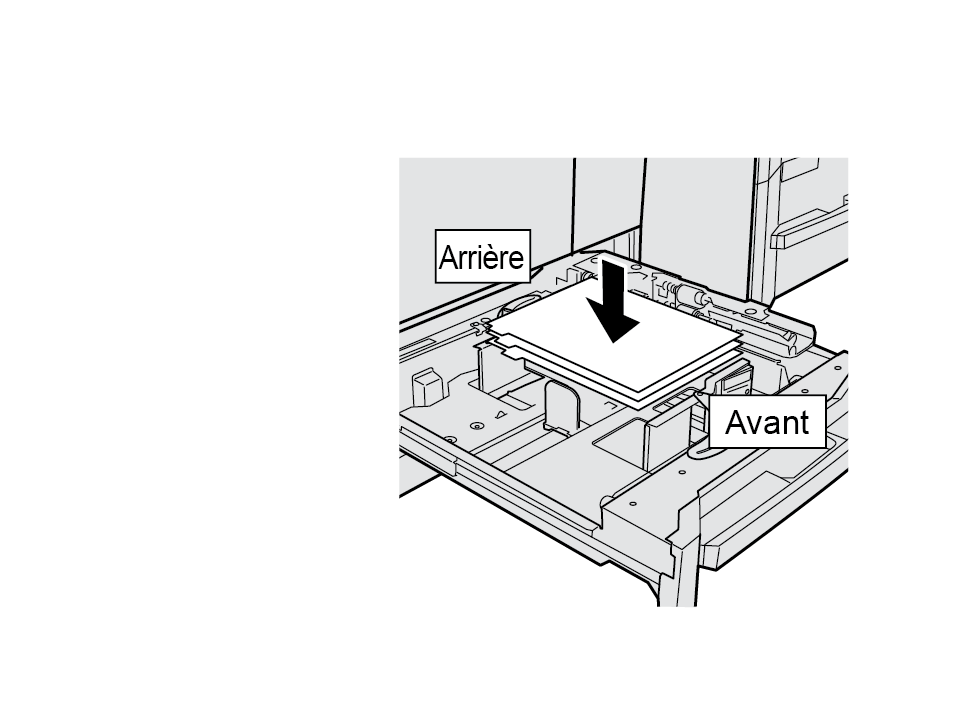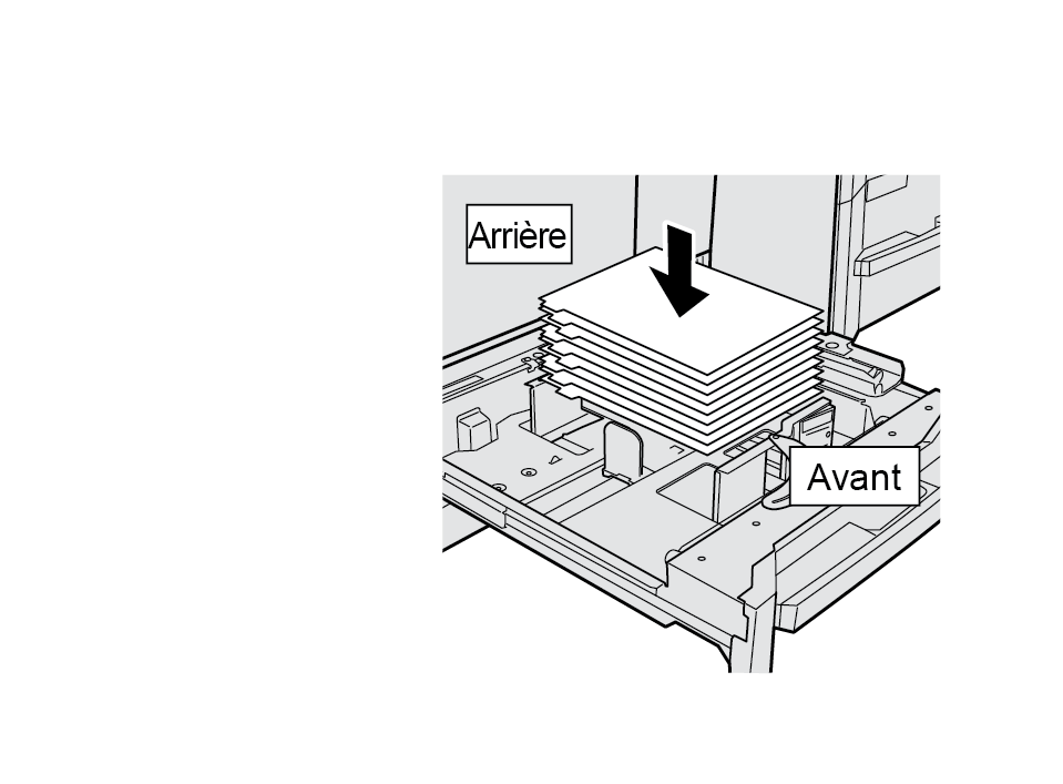 Placez le papier à onglet dans le bac principal comme sur l'illustration affichée ci-dessus.