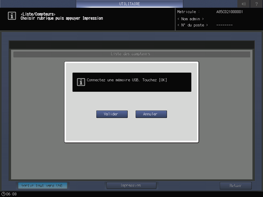 Branchez le périphérique de mémoire USB et appuyez sur [OK].