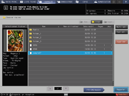 Si la tâche d'impression souhaitée se trouve dans le [Dossier racine], sélectionnez-la dans la liste.