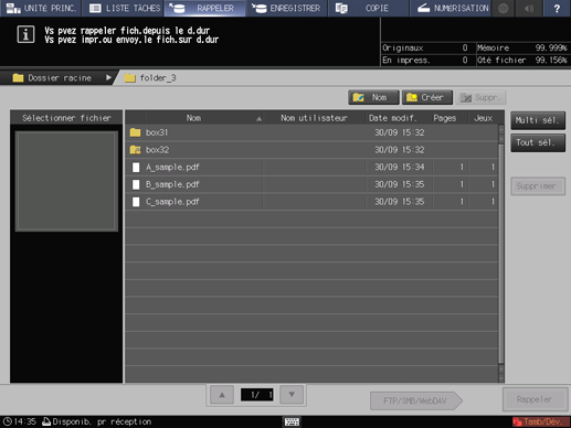 Lorsque la tâche d'impression souhaitée se trouve dans la boîte affichée dans le dossier, sélectionnez cette boîte, puis entrez le mot de passe attribué à la boîte. Sélectionnez la tâche d'impression souhaitée dans la liste dans la boîte.