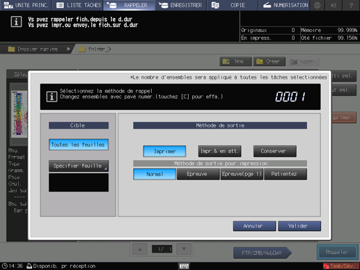 Appuyez sur[[Valider] dans la boîte de dialogue de sélection de la méthode de rappel/sortie.