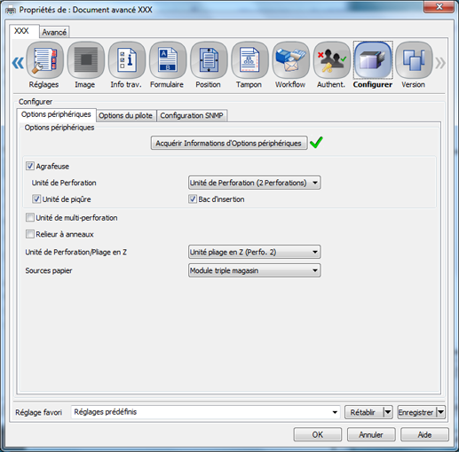 [Acquérir Informations d'Options périphériques] | Appuyez dessus pour détecter un périphérique installé en option sur cette machine.