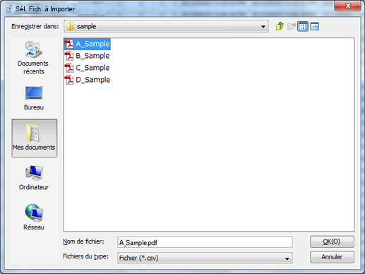 L'écran [Sél. Fich. à Importer] s'affiche.