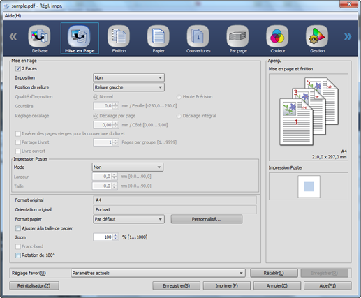 Vous pouvez définir la mise en page du réglage d'impression.