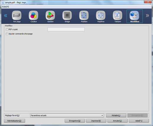 Cet élément s'affiche lorsque la tâche cible est réglée sur PDF en tant que type PDL pendant que le kit de mise à niveau UK-104 ou le kit de mise à niveau UK-214 est installé sur la machine.