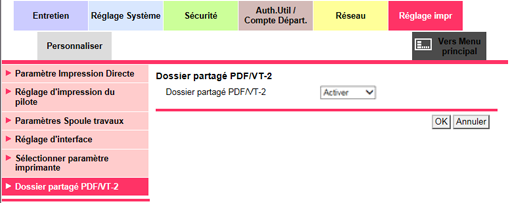 Sélectionnez [Activer] ou [Désactiver] dans la liste déroulante [Dossier partagé PDF/VT-2].