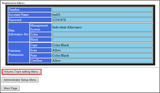 - Si le système d'authentification de compte département de la machine est réglé sur [Account & Password], enregistrez systématiquement un compte. En cas de duplication d'un nom de compte existant, un message d'erreur s'affiche pour indiquer l'indisponibilité du nom.