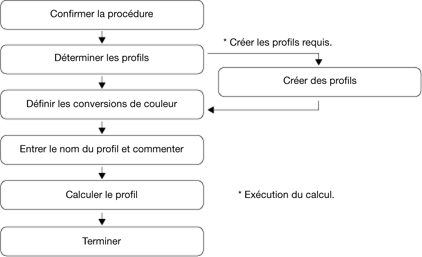 Cette section décrit comment créer le nouveau profil de lien périphériques RVB-CMJN en lançant Color Centro Profiler.