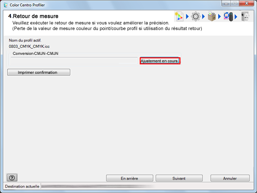 Sur l'écran [Retour de mesure], vous pouvez exécuter améliorer la précision de conversion CMJN-CMJN.