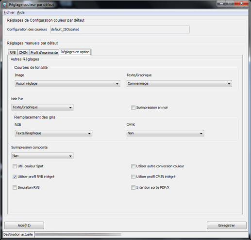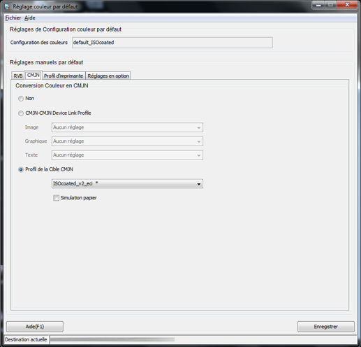 Onglet [CMJN] | [Non] | Sélectionnez cette désactivation pour utiliser par défaut le profil intégré de la cible CMJN. |