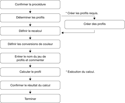 L'écran de l'Assistant apparaît en lançant Color Centro Profiler. En suivant les instructions à l'écran, vous pouvez modifier un des profils composant le jeu de profils.