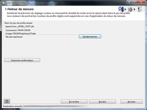 Pour exécuter le retour de mesure, cliquez sur [Ajustement en] de l'objet CMJN.