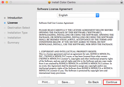 Confirmez le contenu. Si vous acceptez toutes les conditions, cliquez sur [Continue].