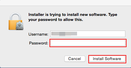 Si vous y êtes invité(e), entrez le mot de passe et cliquez sur [Install Software].