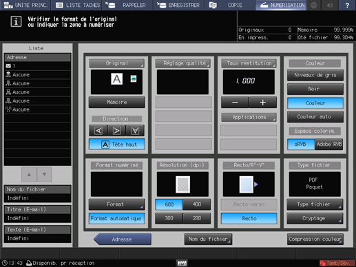 Pour revenir à l'écran [NUMERISER], appuyez sur [Adresse].