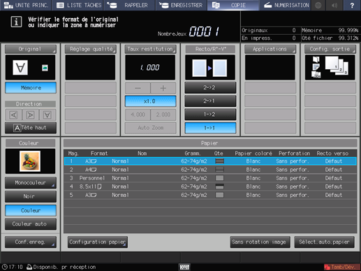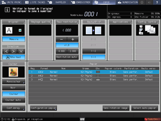 L'indicateur de mémoire situé dans le coin supérieur droit de l'écran [COPIER] permet de contrôler la mémoire restante.