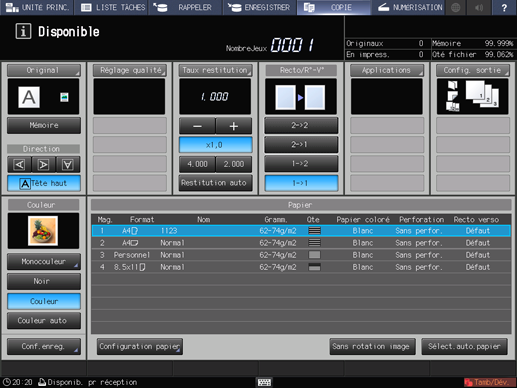 Chaque magasin est préprogrammé avec des spécifications papier. Si vous souhaitez utiliser un autre type de papier que celui chargé dans les magasins, suivez la procédure ci-dessous pour modifier le [réglage papier].