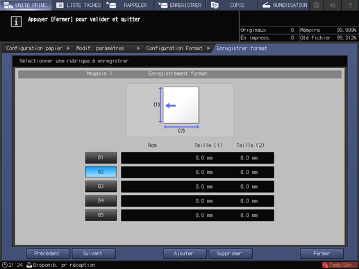 Si la case [Spécifier le format] n'est pas cochée, le format papier est enregistré en tant que [Ignorer].