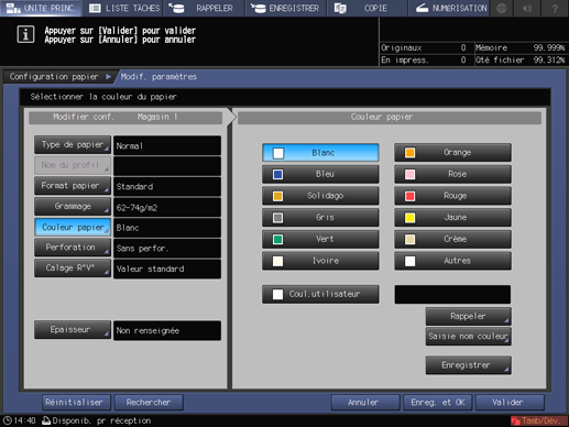 Pour appliquer les conditions papier sans les enregistrer, appuyez sur [Valider]. Passez à l'étape 30.