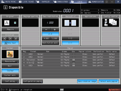 Appuyez sur l'onglet [COPIER] pour afficher l'écran [COPIER].