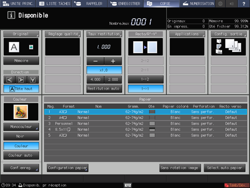 Appuyez sur l'onglet [COPIER] pour afficher l'écran [COPIER].